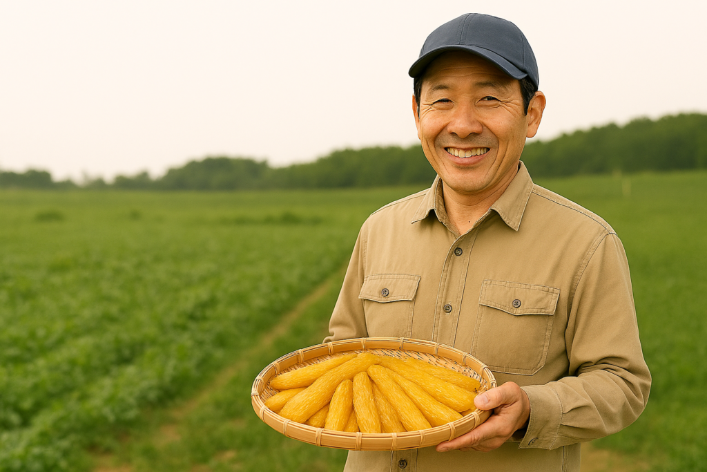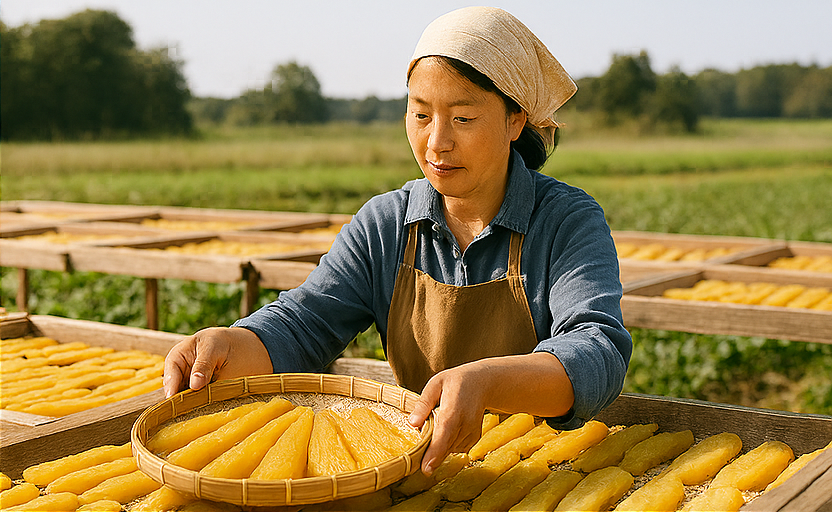 茨城県○○で三代続く干し芋農家。土づくりから加工まで、すべて自家製です。