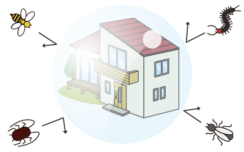 初夏に害虫ブロックを噴霧し、 秋頃まで効果が続けば一年を通して害虫の少ない建物を維持できます。