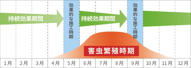 害虫シーズンの後半にも噴霧するとより効果的です。