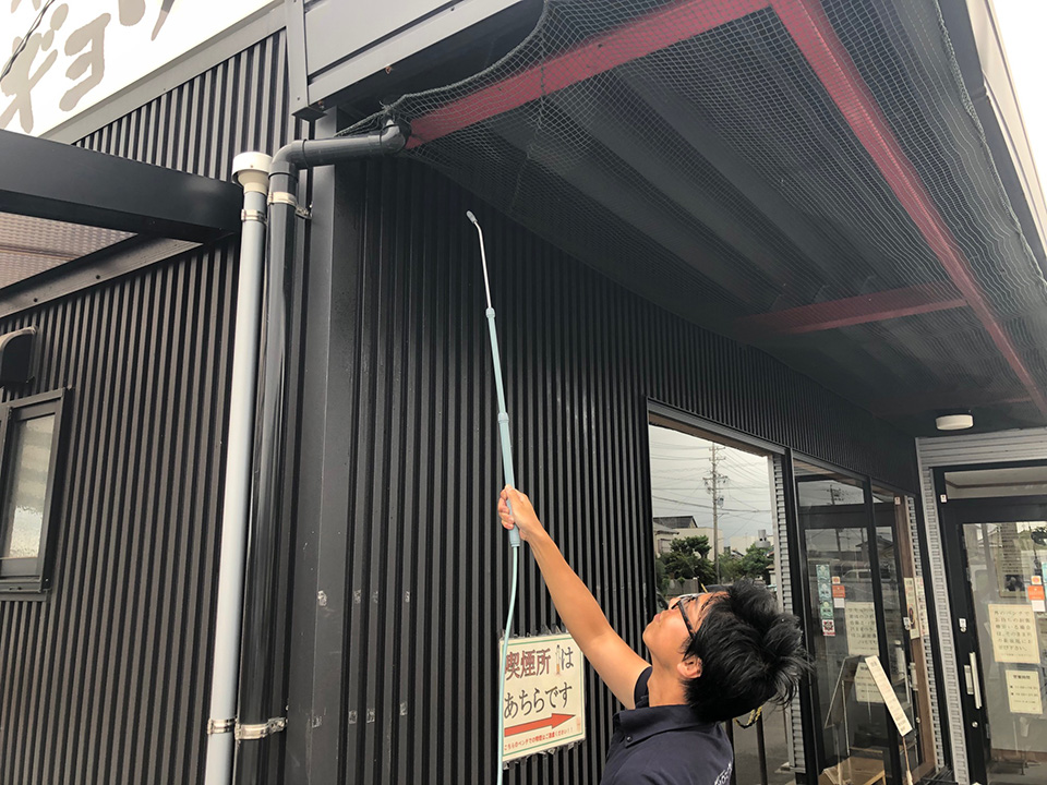 初めて工場外部に施工してもらいました。外からの昆虫侵入は大幅に減りました。毎年お願いしたいと思います。ありがとうございました。